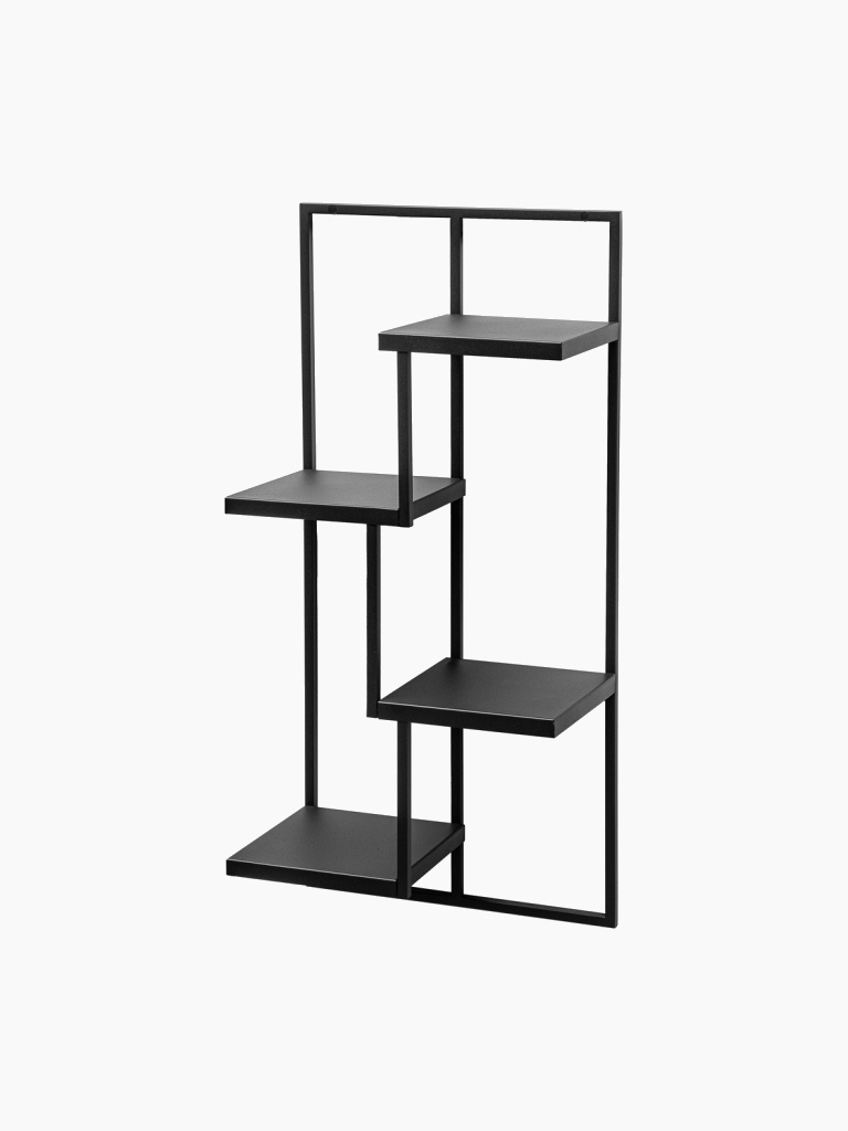 Czarny kwietnik ścienny loft - quattro ripiani