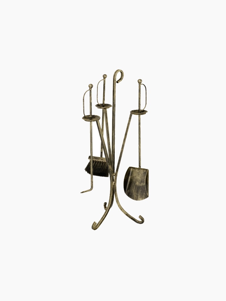 Schmiedeeisen-Ständer mit Kaminreinigungszubehör. Verschiedene Farboptionen verfügbar.