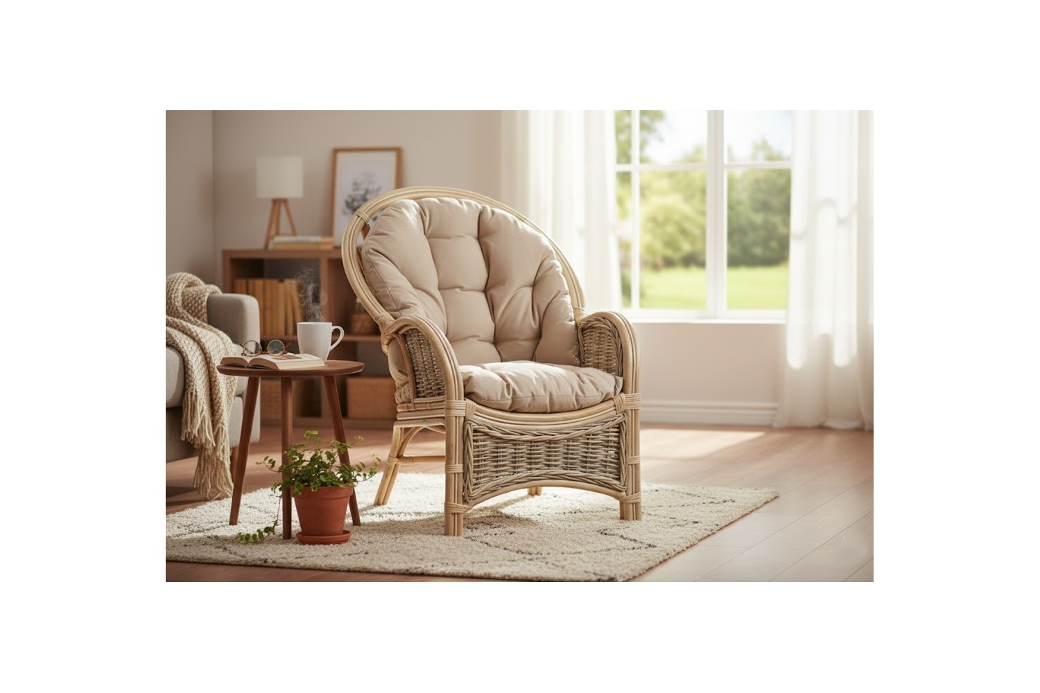 Rattanmöbel, gebleicht und rustikal, natürlich, für Haus und Garten