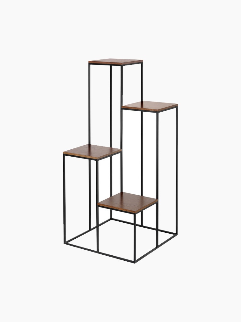 Stilvoll, funktional und zeitlos – der Loft-Blumenständer ist die perfekte Lösung für Liebhaber minimalistischen Designs. Die Metallbasis in Kombination mit Holzböden schafft eine harmonische Einheit, die in jedes Interieur passt. Vier Quader in unterschiedlicher Höhe bieten Platz für mehrere Pflanzen, während die solide Konstruktion Stabilität und Langlebigkeit gewährleistet.