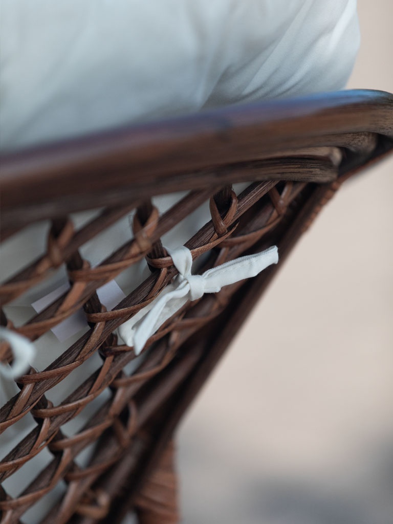 Jedes Element des Sets wird von Hand aus natürlichem Rattan gefertigt. Dank der Flechtung aus dreifacher Rattanfaser sind die Möbel besonders langlebig und begeistern gleichzeitig mit ihrer einzigartigen Struktur. Die braunen Farbtöne verleihen Innenräumen und Terrassen Wärme und Eleganz.