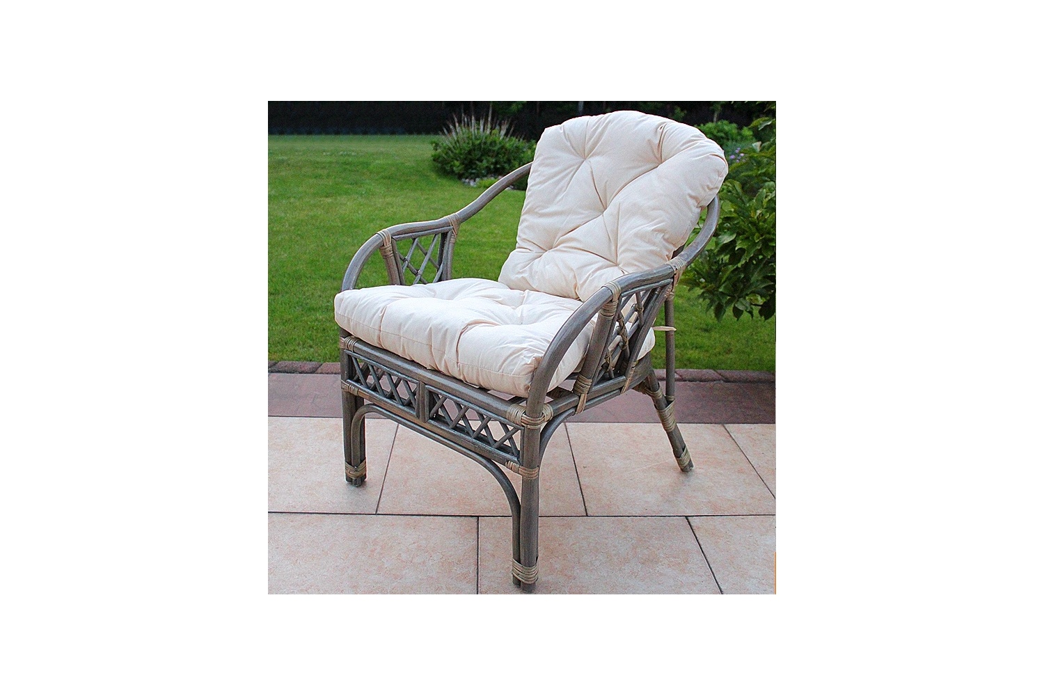 Ein grauer, rustikaler und bequemer Rattan-Sessel mit hoher Rückenlehne - Costa