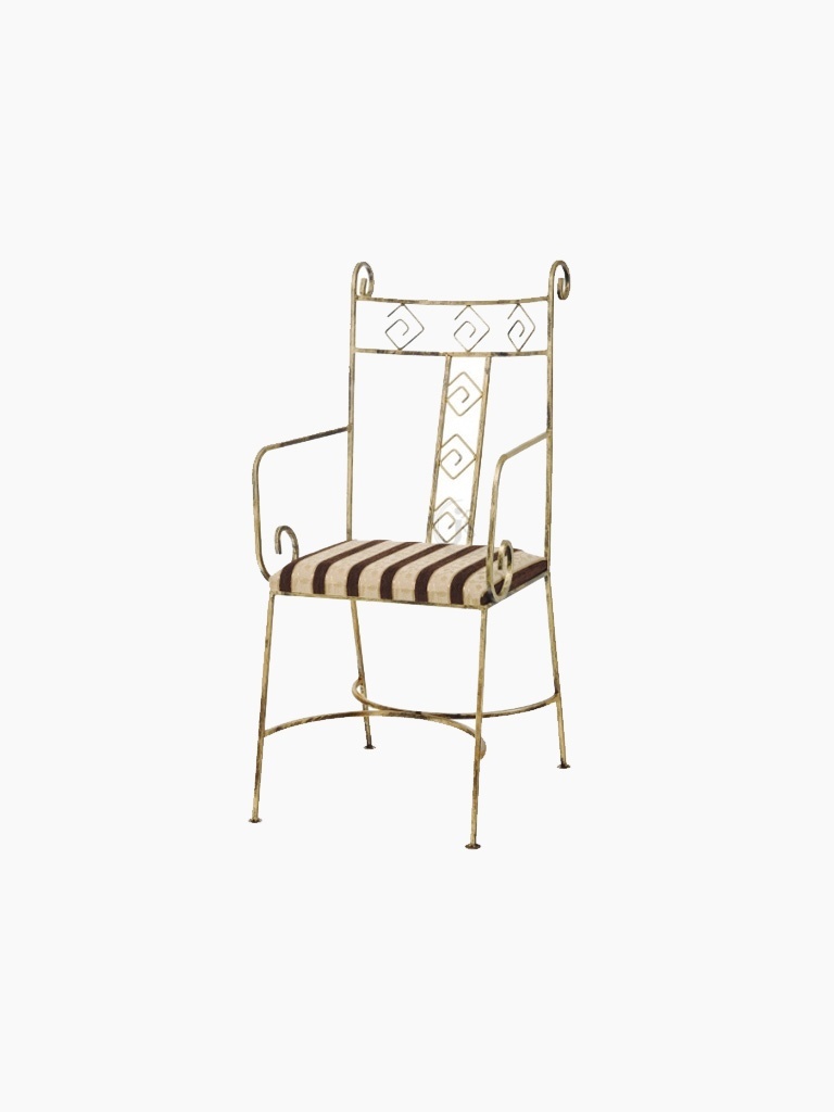 Ein individuell gestalteter Stuhl aus Schmiedestahl mit weichem, gepolstertem Sitz, der ebenfalls mit einer Auswahl an Polsterstoffen nach Wahl versehen werden kann.