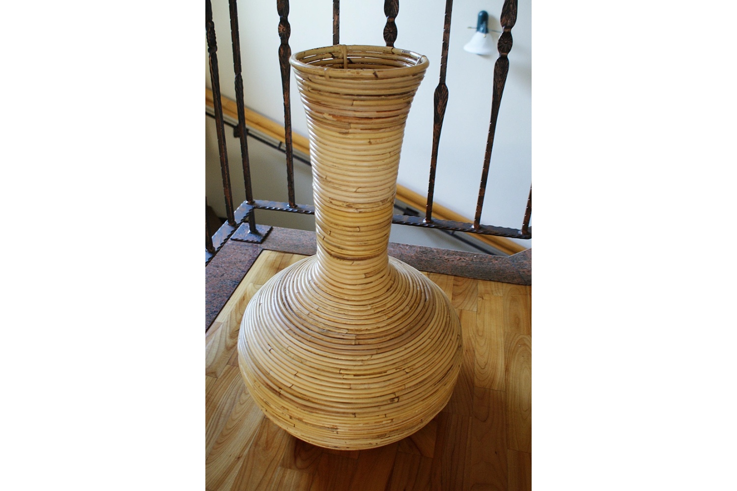 Rattanvase für Blumen - stilvolle Dekoration und eine gute Geschenkidee. Die stroh- oder honigfarbene Farbe macht die Vase sehr warm und dekorativ nützlich. Rattandekorationen können Wunder wirken, das Kleine wird groß...