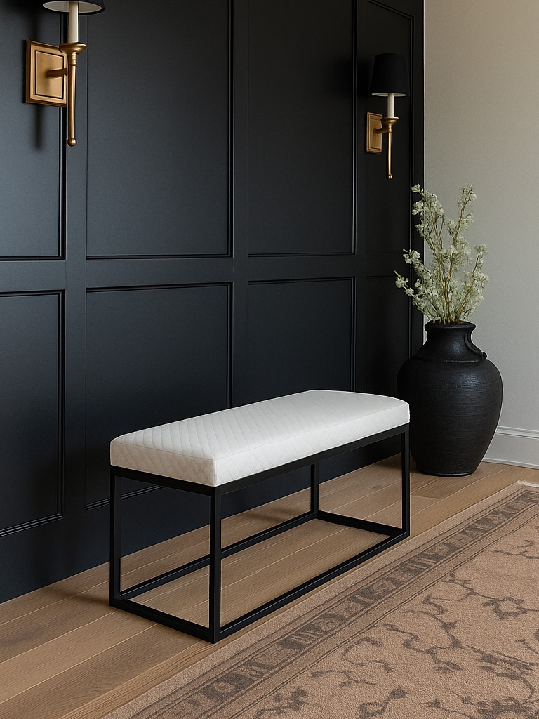 Die Bank bietet eine großzügige Sitzfläche – bequem für zwei, sogar drei Personen. Sie eignet sich perfekt als Sitzgelegenheit im Flur, am Bett im Schlafzimmer, im Ankleidezimmer, Kosmetiksalon oder Boutique-Showroom.