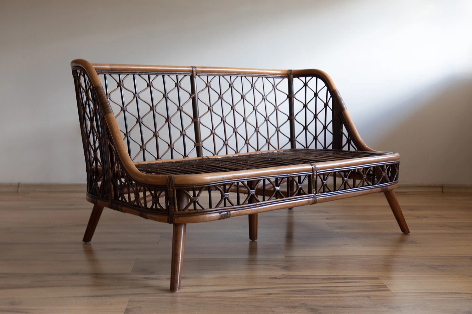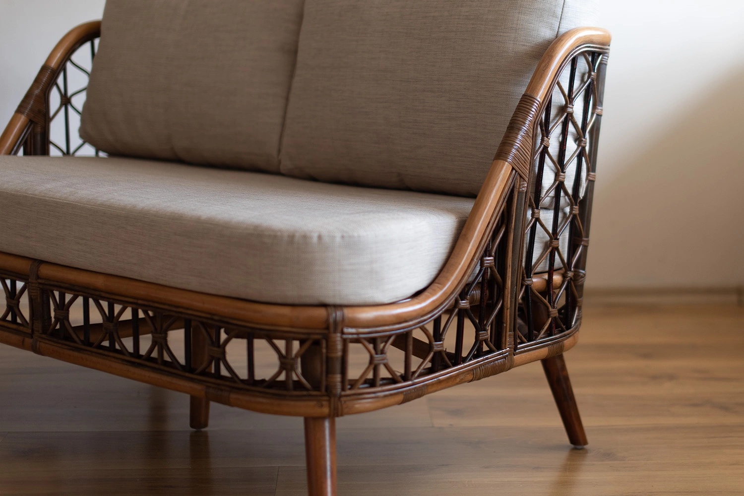Stilvolles Rattansofa, naturbelassener Rattan & Massivholz