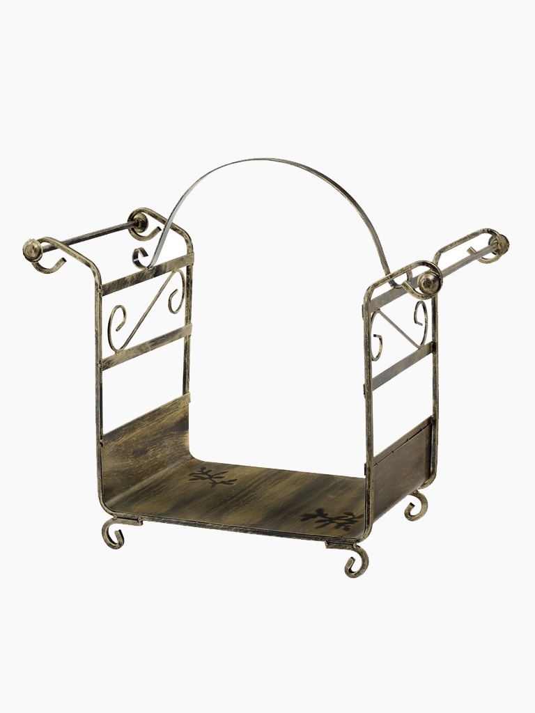 Der Holzkorb ist aus solidem Metall gefertigt, was ihm Haltbarkeit und Stabilität verleiht. Sein leicht antikes Design unterstreicht die Eleganz, und die Farbwahl ermöglicht es, ihn an verschiedene Einrichtungsstile anzupassen. Wählen Sie aus patinierten Farbtönen: gold, silber, kupfer oder klassischem schwarz und weiß.