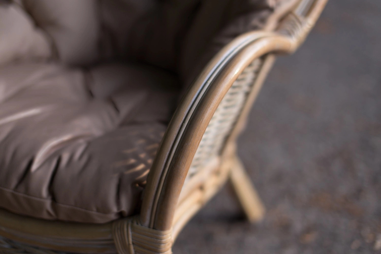 Um die Rattanmöbel Lirene leicht ländlich und stilistisch passend zu provenzalischen oder rustikalen Stilen zu machen, werden die Möbel sanft weiß gewischt. Dies geschieht vor allem an den Flechtstellen, aber nicht nur.