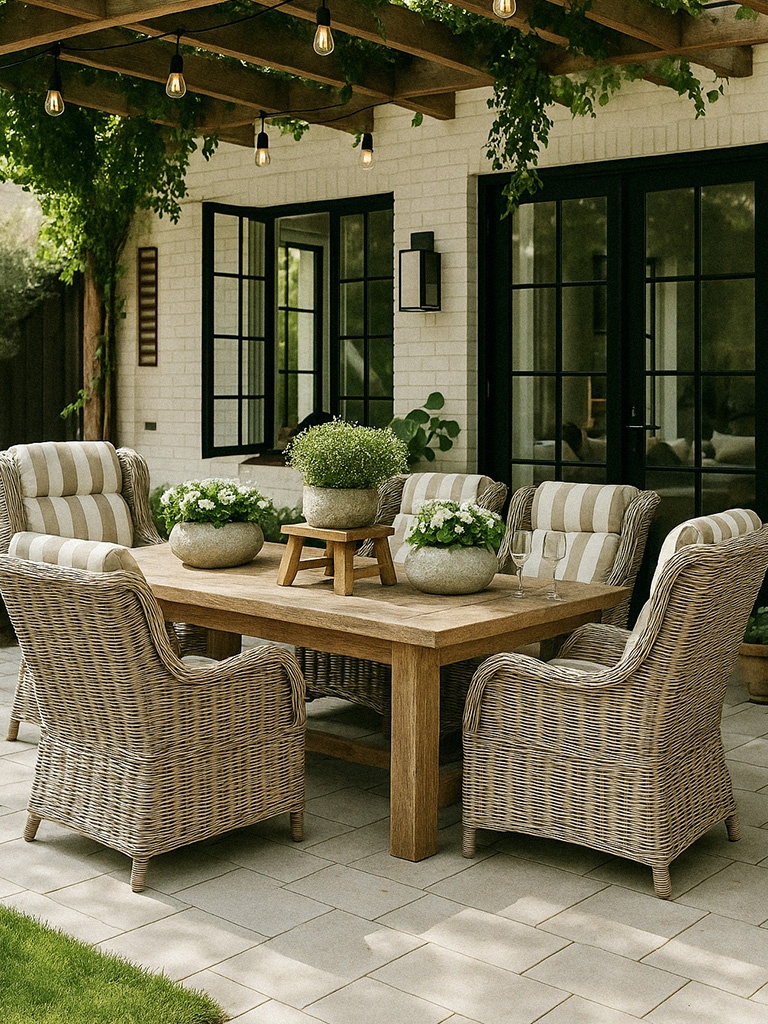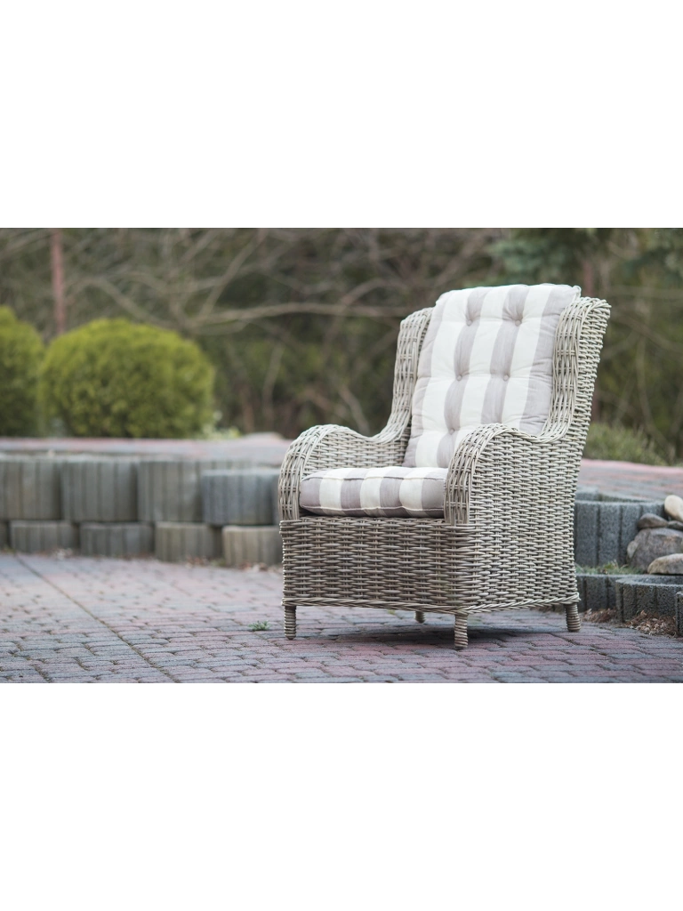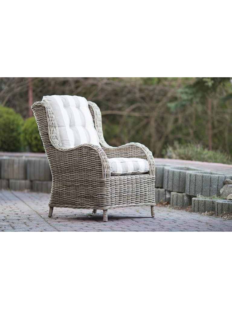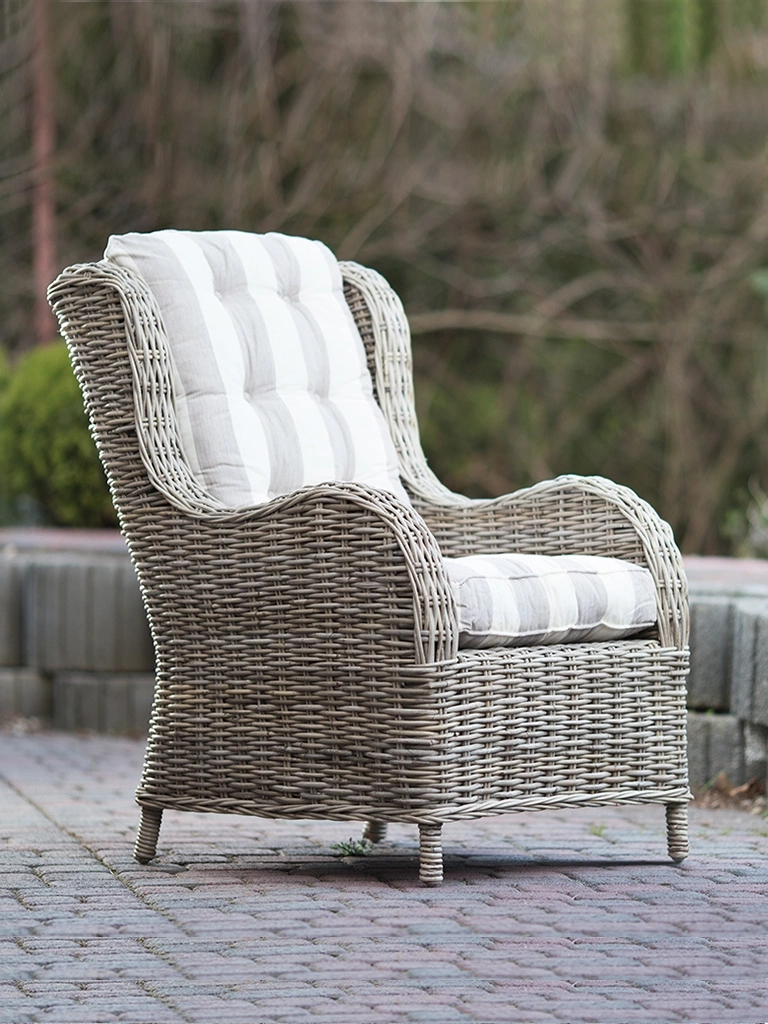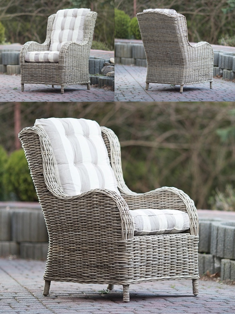 Każdy fotel wyplatany jest ręcznie, nadając w ten sposób szlachetności pracy ludzkich dłoni. Z kolei poduchy w pasy świetnie łączą ze stylami prowansalskimi, rustykalnymi, boho czy vintage.