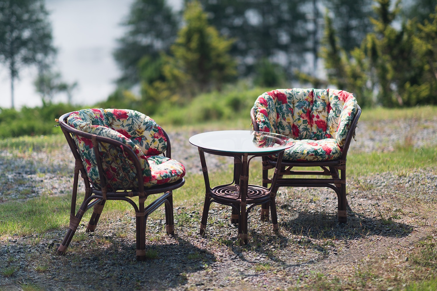Zestaw Lunoo składa się z dwóch wygodnych foteli i praktycznego stolika, tworząc idealne miejsce do relaksu i spotkań. Każdy element emanuje ciepłem naturalnego materiału, a sielski charakter mebli podkreślają piękne, grube poduchy z kwiatowymi motywami. To właśnie one sprawiają, że można się w nich "zapaść" i zapomnieć o troskach. Poduchy okalają siedziska również z boków, zapewniając niezrównany komfort i otulające doznania.