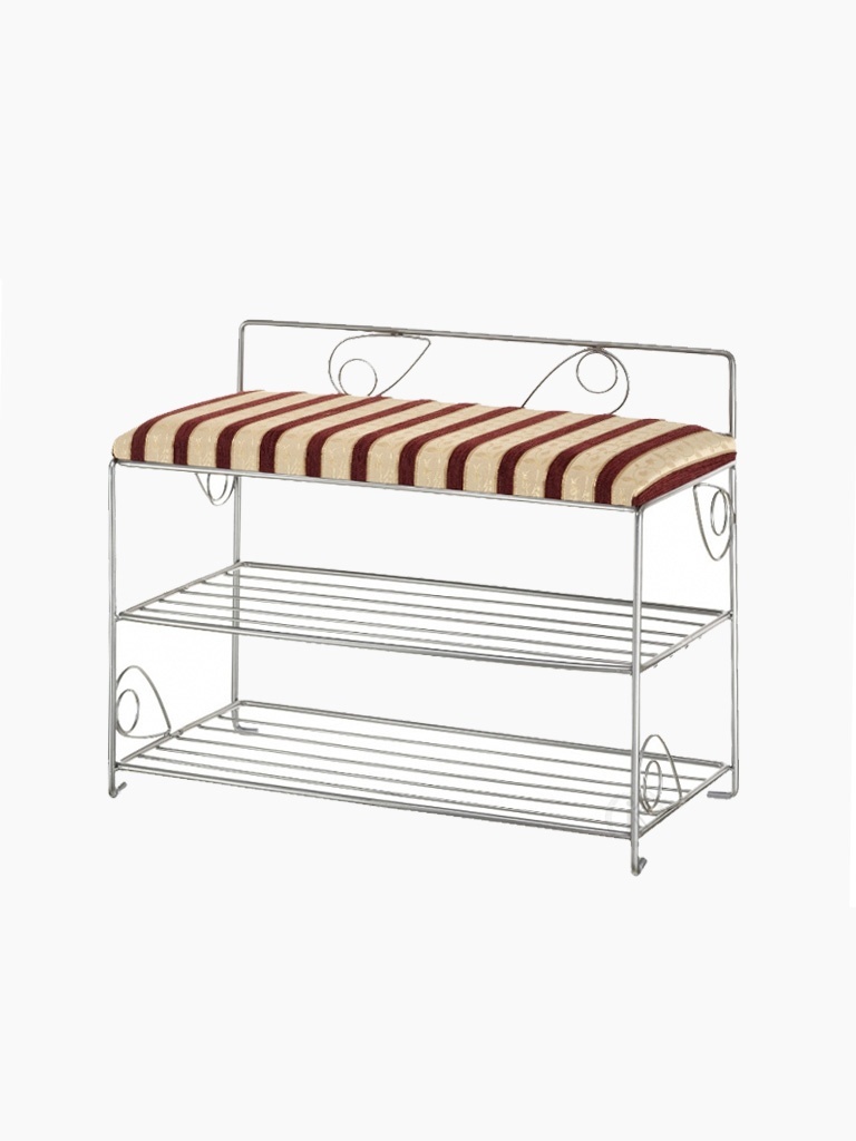 Ławka podwójna z metalową konstrukcją i miejscem na buty – idealne rozwiązanie do Twojego przedpokoju