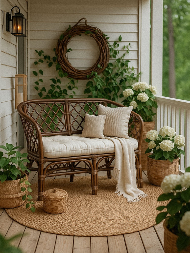 Rattanowa sofa stylowa z białej abaki oraz rattanu | Simoo dwójka