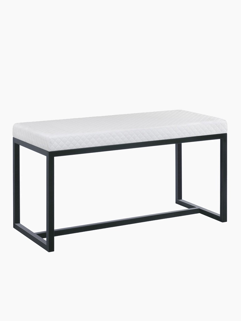 Kovový rám z práškovanej ocele v čiernej farbe zaručuje výnimočnú odolnosť a ochranu proti poškodeniu a deformáciám. Čalúnené sedadlo je dostupné v rôznych látkach a farbách – od elegantného velúru, cez ľahko čistiteľné tkaniny až po moderné štruktúry typu boucle. Môžete si lavicu prispôsobiť každému interiéru – od surového loftu po jemnú klasiku.