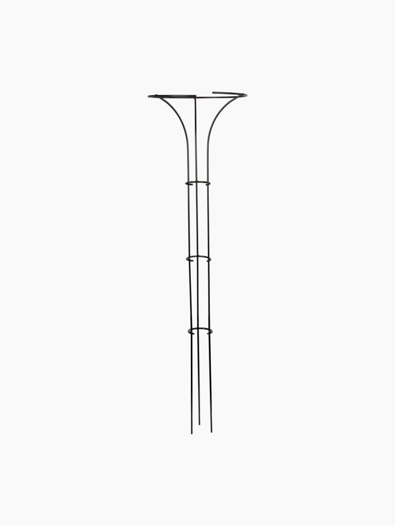 Zapichnite oporu do zeme alebo ju vložte do kvetináča tak, aby malý kruh (9 cm) viedol výhonky rastliny. Kovová povrchová úprava je odolná voči poveternostným vplyvom a nevyžaduje špeciálnu údržbu – stačí občasné zotretie vlhkou handričkou.