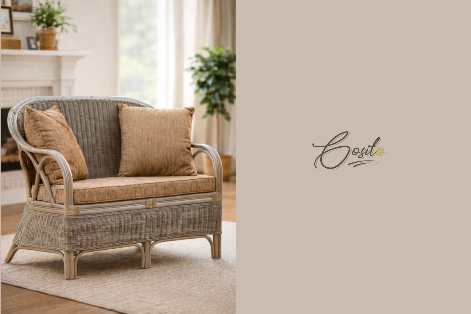 Dvojmiestna pohovka z prírodného ratanu lavica Gosito