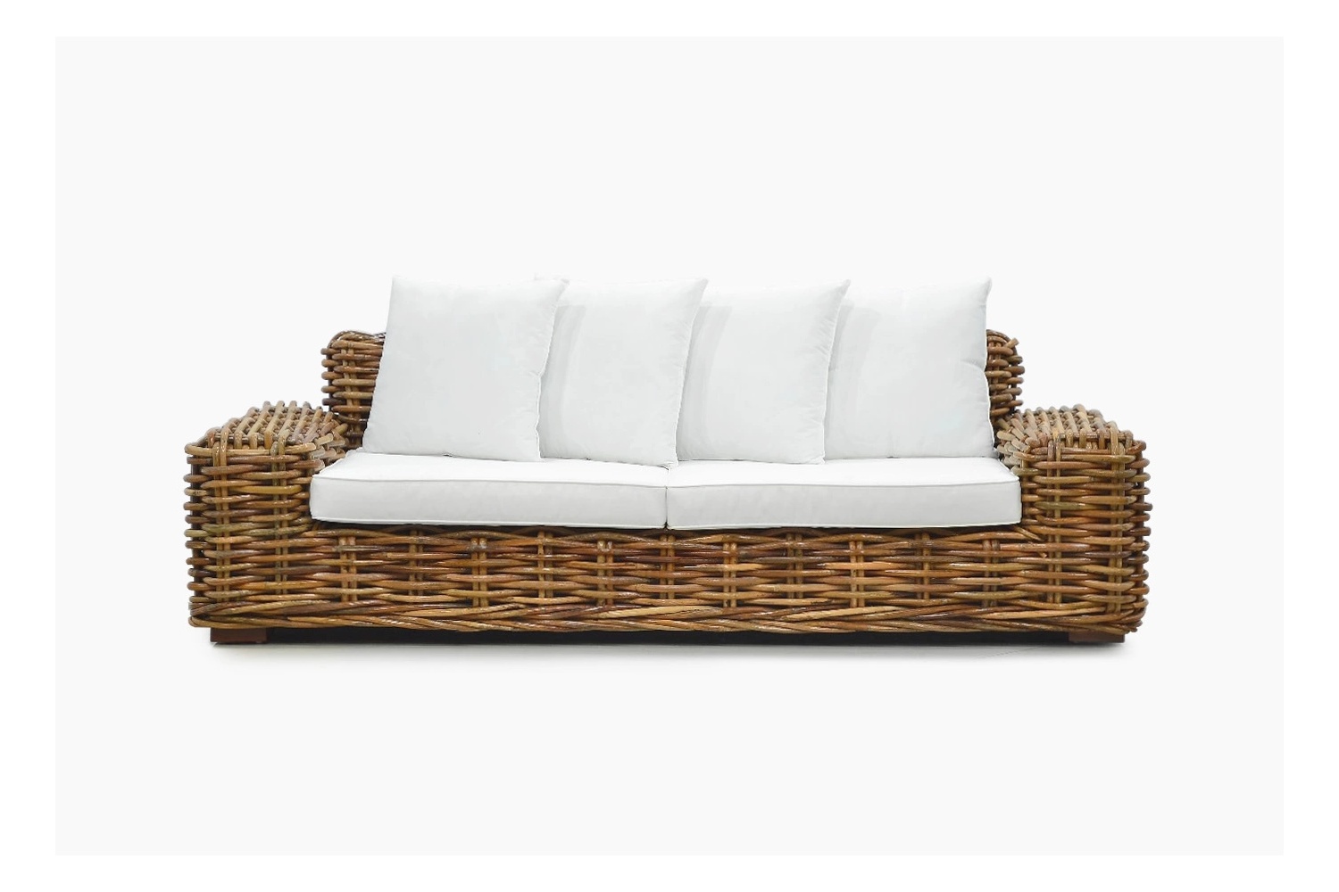 Pevná pohovka z prírodného ratanu pre dve osoby. Vyrobená z prírodného ratanu.