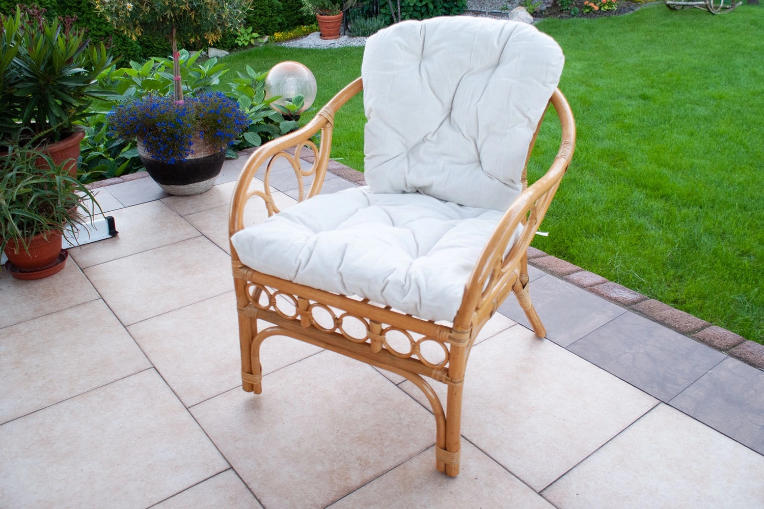 Ratanové kreslo prírodné, medovo hnedé, s vankúšom