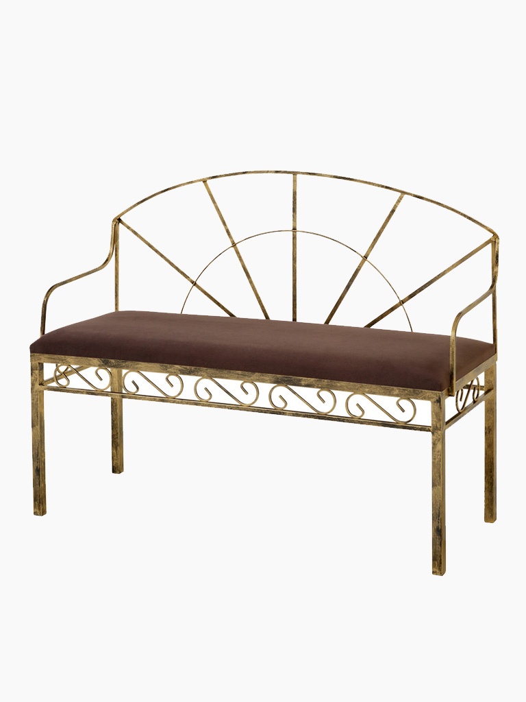 Štýlová kovová lavica s mäkkým čalúneným sedadlom
