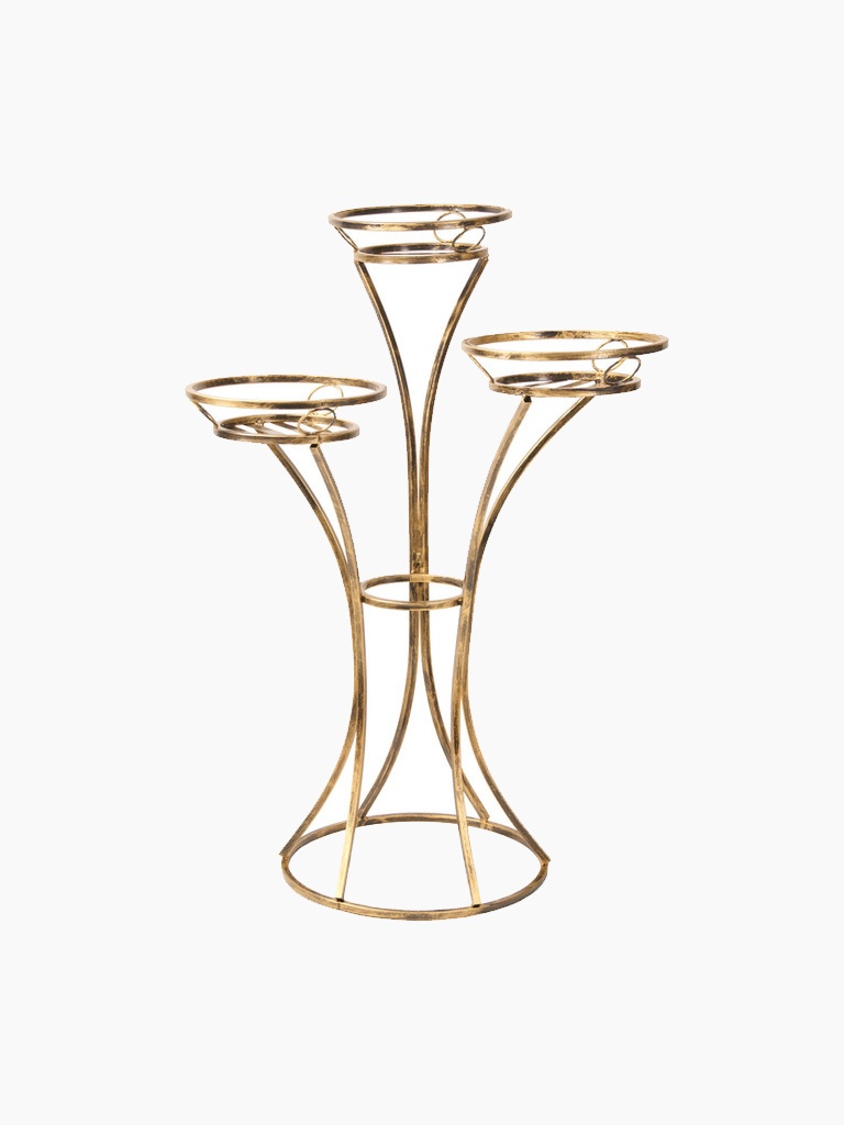 Štýlový zlatý kvetinový stojan, stojan na 3 kvety