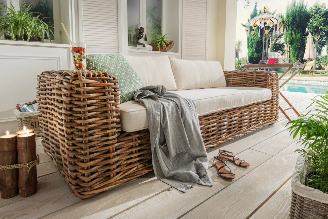 Sofa rattanowa, sofa z rattanu naturalnego do domu i ogrodu